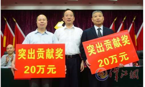 大力电工“SFC系列软起装置”荣获襄阳市科技进步一等奖,钒电池事业部总经理余龙海获得2015年度襄阳市突出贡献奖。襄阳市委书记李乐成为其颁奖。襄阳日报、襄阳晚报头版文字报道。