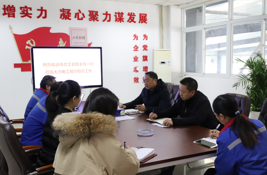 2023年2月15日上午,襄阳市总工会党组成员、经费审查委员会主任韩江涛一行莅临大力电工视察指导工作,大力电工党委副书记、工会主席张继宏、财务总监周义龙等对前来视察指导的领导们表示热烈欢迎。