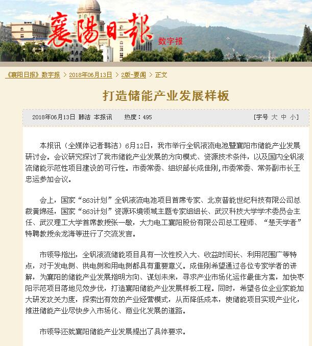 襄阳日报:大力电工参与襄阳市储能产业发展研讨会